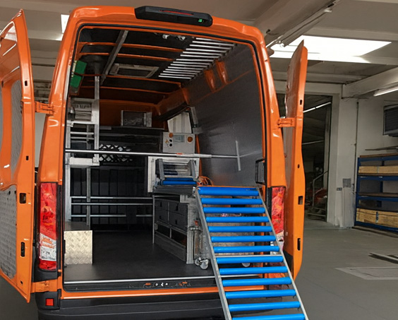VEHÍCULOS EQUIPADOSFabricamos vans totalmente equipadas, que permiten transportar todo el equipo necesario para la instalación de liners. |